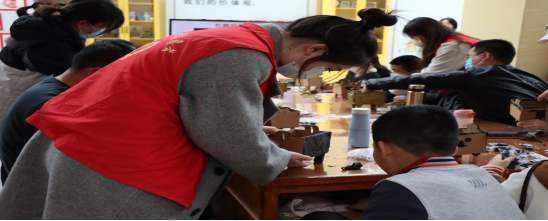 另一组在售票处,帮助游客使用自助售票机买票;还有一组则在二楼,帮助小朋友们制作纸质鼎。