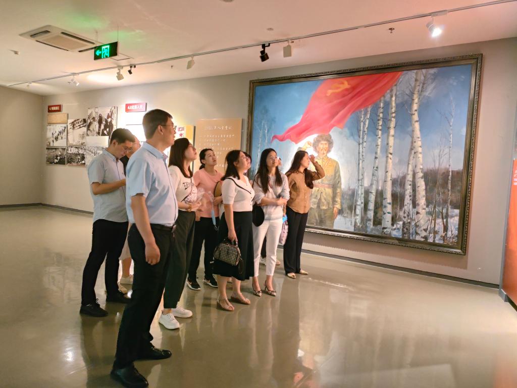 公司教师党支部首先来到《序厅》,其中雕塑还原出逼真的战争场面,再现了革命时期战士的英勇无畏。大厅柱子上革命前辈们为英雄杨子荣的题词,以及大厅的最西端南墙上悬挂着的牟平将军们大型照片、大厅的后墙上悬挂牟平籍烈士的英名。这些共和国的功臣为中华民族的独立、新中国的诞生和国家的富强贡献了自己的生命,将被人民永远铭记。之后,教师们来到《辉煌的历史——牟平革命史陈列》部分,其以时间为序,以历史为事实,讲述了牟平从有了第一位共产党员到新中国成立17年的艰苦曲折、波澜壮阔的光辉历程,展现了革命英烈坚强不屈、英勇参战和誓与日军血战到底的大无畏革命精神。紧接着,《大智大勇一代英豪——杨子荣事迹陈列》部分映入眼帘,其采用连环画方式,展示了杨子荣从出生到牺牲的30年传奇人生,2009年9月1日特等侦察英雄杨子荣被国家评为“双百英雄”。杨子荣的事迹激励着一代又一代中华儿女为建设新中国而发奋图强、努力工作。