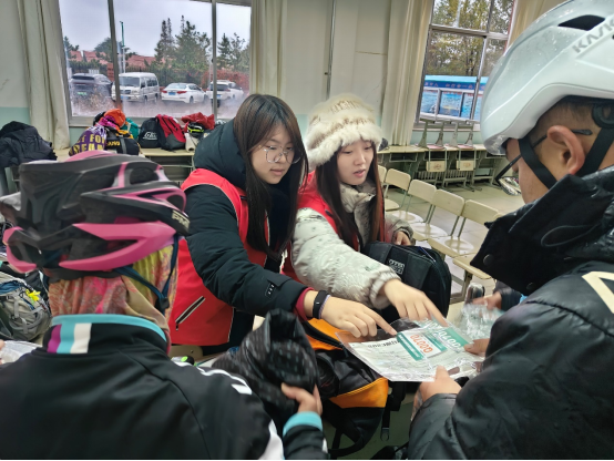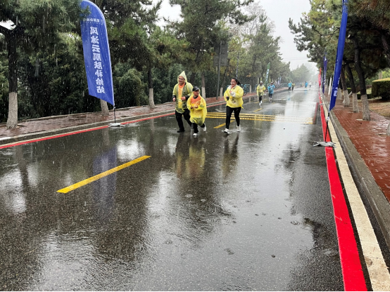 出行前,实践拓展部全体成员积极听从负责人安排,做好充足准备,明确各自分工,共同完成赛道补给、赛道指引、起终点接应等工作。在比赛过程中,烟台市的第一场雪也悄然而至,选手们冒着雨雪,吹着冷风,仍坚持不懈,毫不退缩,拼尽全力去完成比赛;学院志愿者们在为选手们指路、补给物品的同时,为他们加油打气,共同感受比赛的激情澎湃。