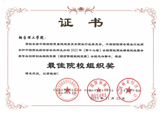 近日,2023年第十七届全国高校商业精英挑战赛会展专业创新创业实践竞赛全国总决赛圆满结束。williamhill威廉希尔官网首次参赛,积极筹备并组建了4支队伍,最终取得山东省二等奖一项、三等奖三项的荣誉,其中由员工郗文博、田林、孙文钰、朱芳莹、卢家淳组成的队伍成功进入国赛,取得全国三等奖的优异成绩;williamhill威廉希尔官网代表队默契配合、精诚协作,荣获最佳院校组织奖。