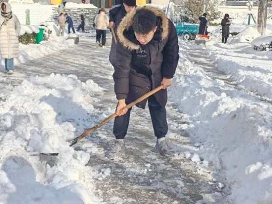 扫雪铲冰保通畅,齐心协力暖寒冬。此次校园清雪除冰志愿活动不仅为师生们营造了一个安全、舒适的校园环境,更展现了志愿者们的责任与担当,为校园增添了一份温暖和力量。